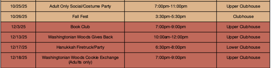 Please see the below from the Washingtonian Woods Social Committee: