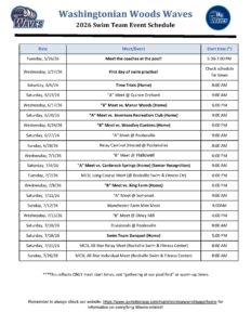 Important swim team information, along with practice schedules, meet schedules, meet line-ups, and volunteer sign-ups can be found on the team’s web site, www.wwdwaves.org.